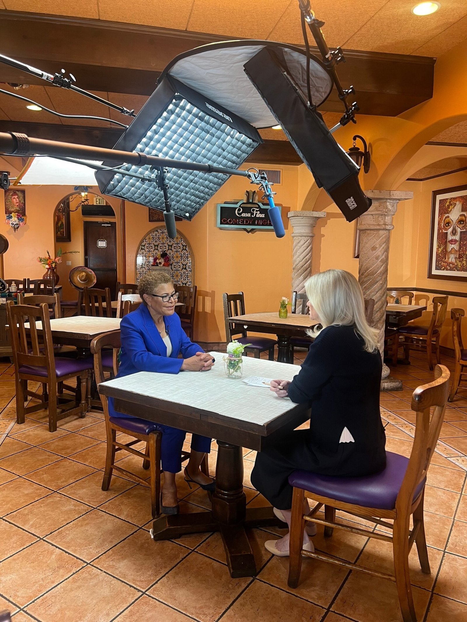एबीसी के मार्था राडदत्ज़ ने बॉयल हाइट्स रेस्तरां कासा फिना में लॉस एंजिल्स के मेयर करेन बास का साक्षात्कार लिया।