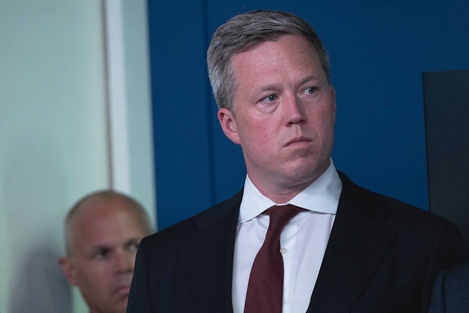 सेना सचिव डैन ड्रिस्कॉल, सोमवार, 11 अगस्त, 2025 को वाशिंगटन, डीसी में व्हाइट हाउस के जेम्स ब्रैडी प्रेस ब्रीफिंग रूम में राष्ट्रपति डोनाल्ड ट्रम्प को पत्रकारों से बात करते हुए सुनते हैं।