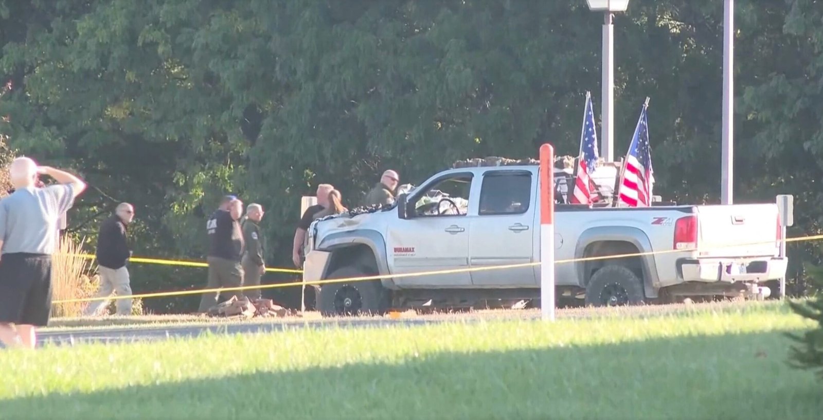 कथित तौर पर एक पिकअप ट्रक का उपयोग संदिग्ध द्वारा किया जाता है, जो कि 28 सितंबर, 2025 को एक घातक हमले में, मिशिगन के ग्रैंड ब्लैंक में लेटर-डे सेंट्स चैपल के एक चर्च ऑफ जीसस क्राइस्ट ऑफ लेटर-डे सेंट्स चैपल के सामने के दरवाजों को राम करने के लिए, चैपल के बाहर बैठता है क्योंकि पुलिस अपराध की जांच करती है।